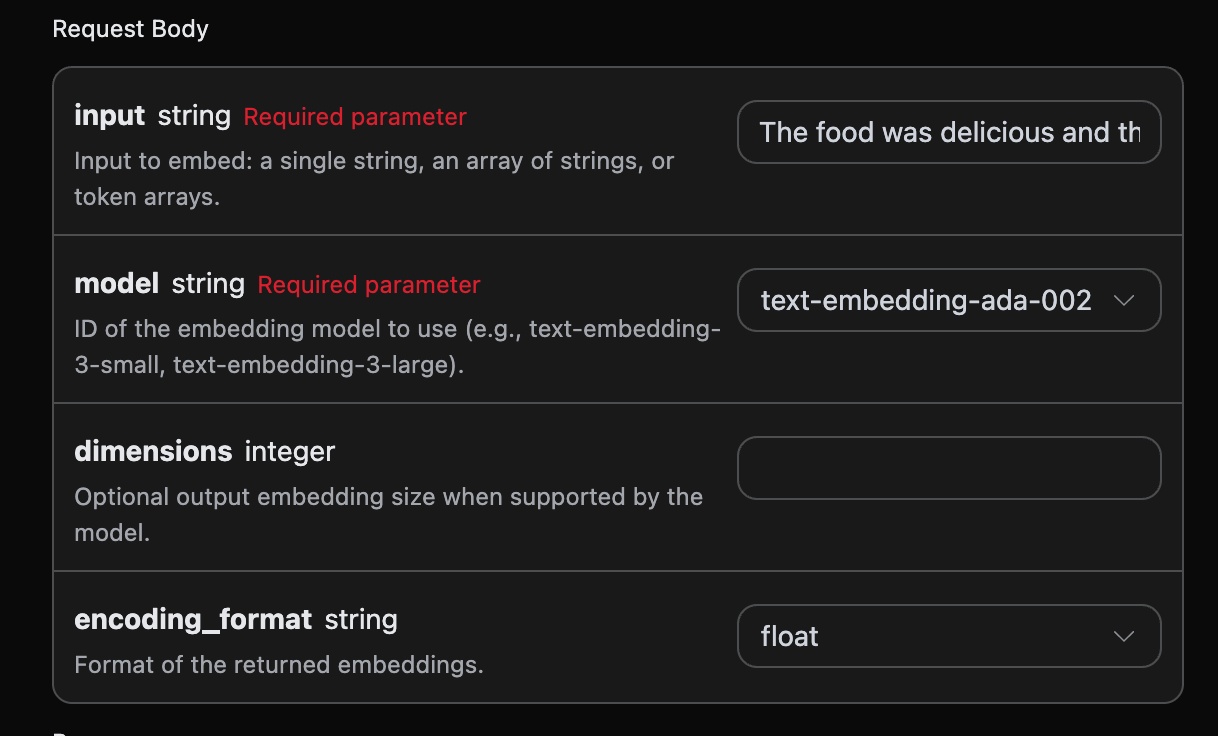 "model": "text-embedding-ada-002",