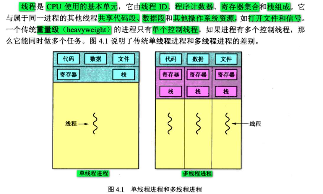 - 线程依附于进程,线程是存在于进程的空间,进程不存在则线程也不存在;多个线程共享了进程资源,代码段,数据段,打开的文件等