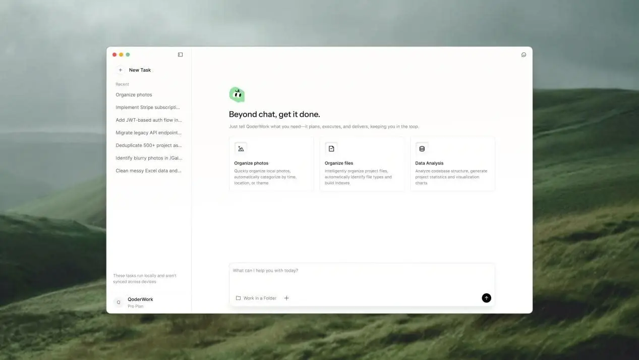 Qoder Worker并非简单的聊天机器人,而是一个具备自主规划与执行能力的"数字同事"。它集成了顶尖的大模型与高效的Agent框架,能够理解复杂的用户意图,并将其自动拆解为可执行的步骤序列,让用户无需精通各类专业软件,仅需一句话即可调度AI处理工作,实现生产力的跃升。