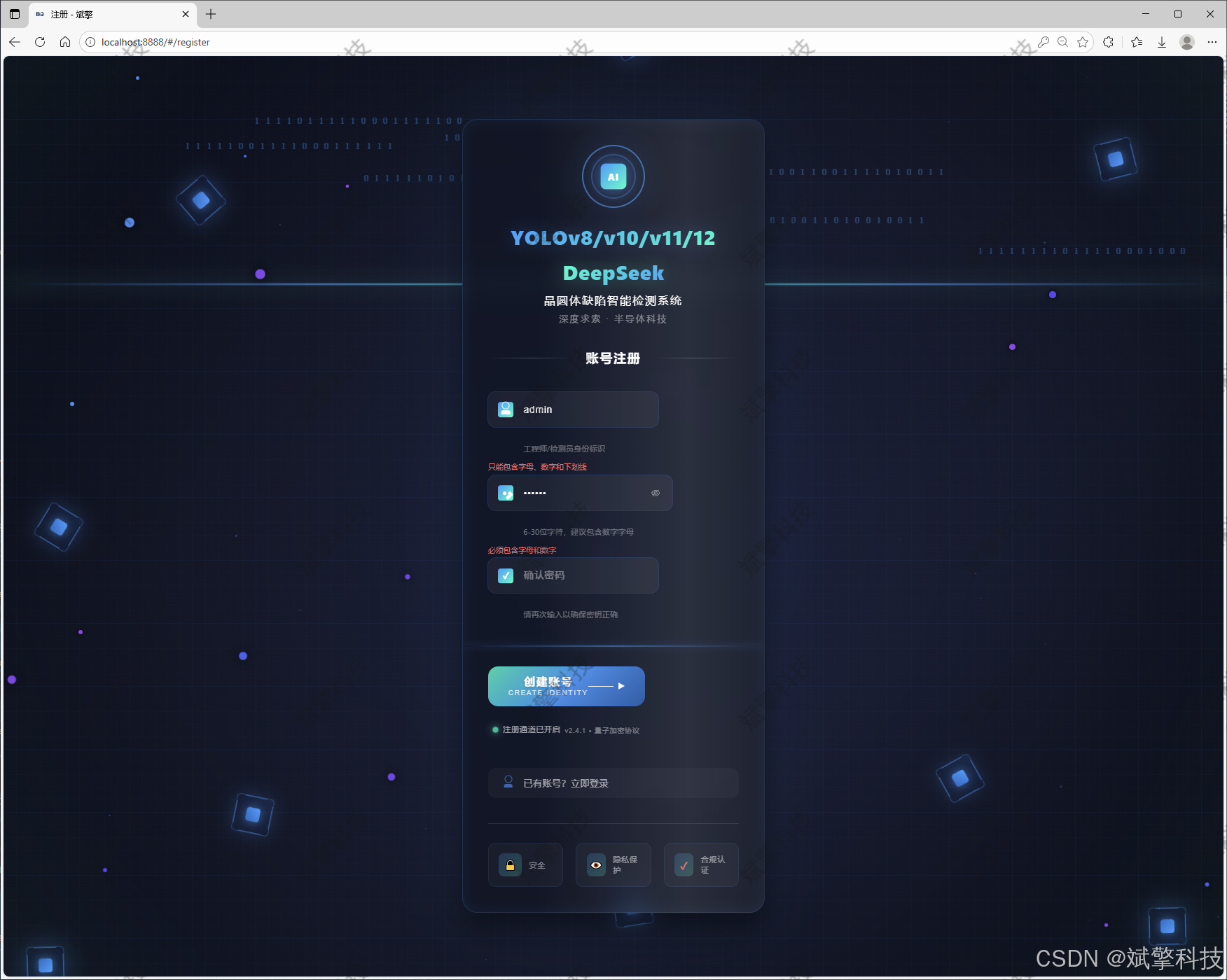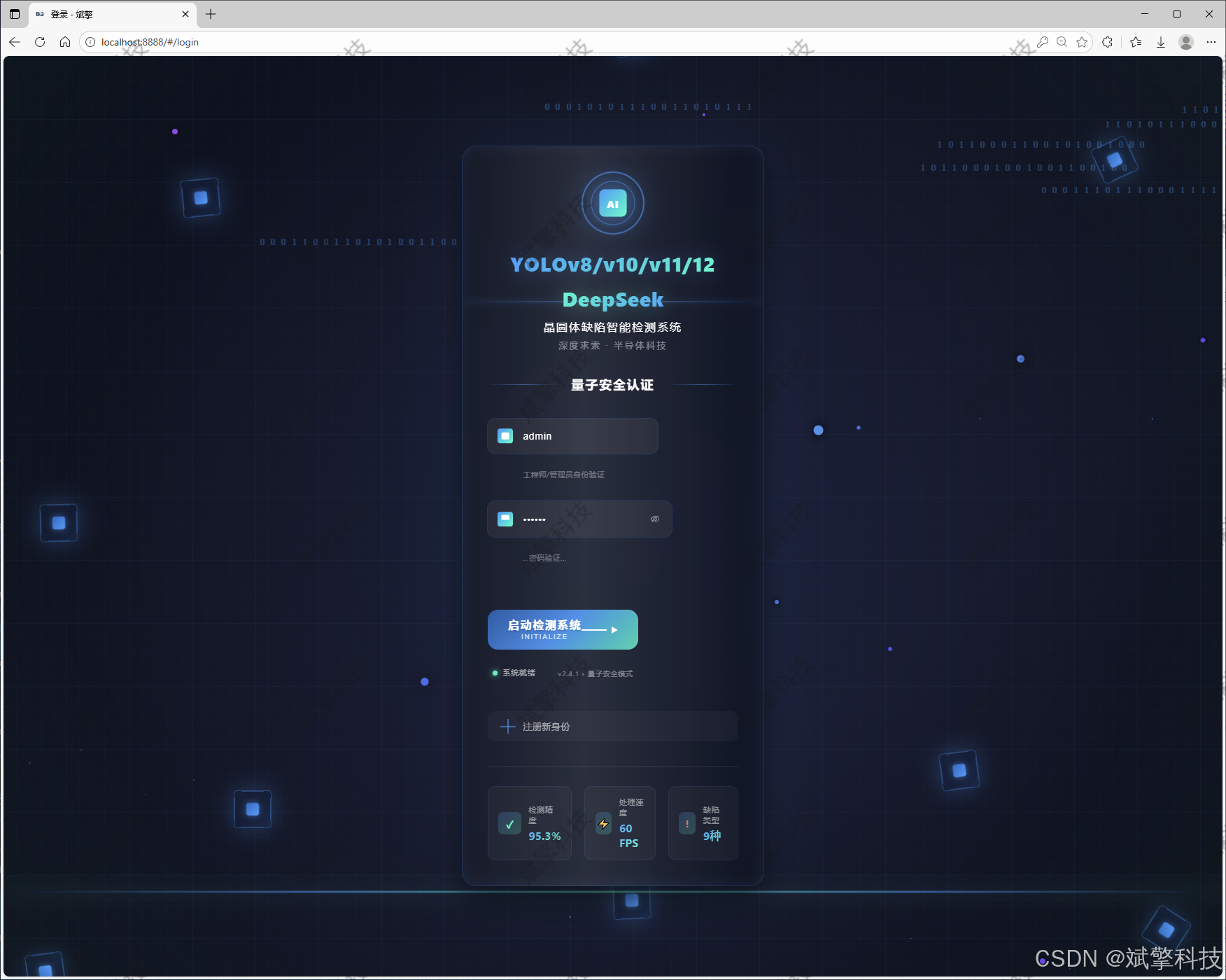 本文提出了一种基于深度学习技术的晶圆体缺陷识别检测系统,该系统集成了当前最先进的YOLO系列目标检测算法(包括YOLOv8、YOLOv10、YOLOv11和YOLOv12),并创新性地融入了DeepSeek智能分析模块。系统采用前后端分离的现代化Web架构,具备完善的用户管理、多模态检测(图像、视频、实时摄像头)、数据可视化和智能分析功能。通过优化的深度学习模型和精心设计的用户界面,本系统能够准确识别9类晶圆缺陷,包括中心缺陷、环形缺陷、边缘定位缺陷等,在半导体制造质量控制领域展现出显著的实用价值。实验结果表明,系统在包含13000张晶圆图像的数据集上达到了优异的检测精度和实时性能,为半导体制造行业的自动化缺陷检测提供了高效可靠的解决方案。