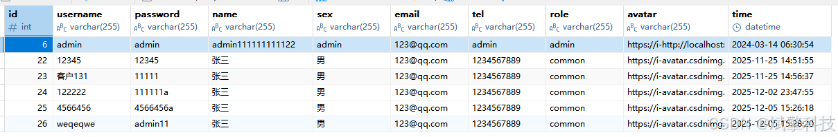 用户信息修改(用户名、邮箱、角色等)