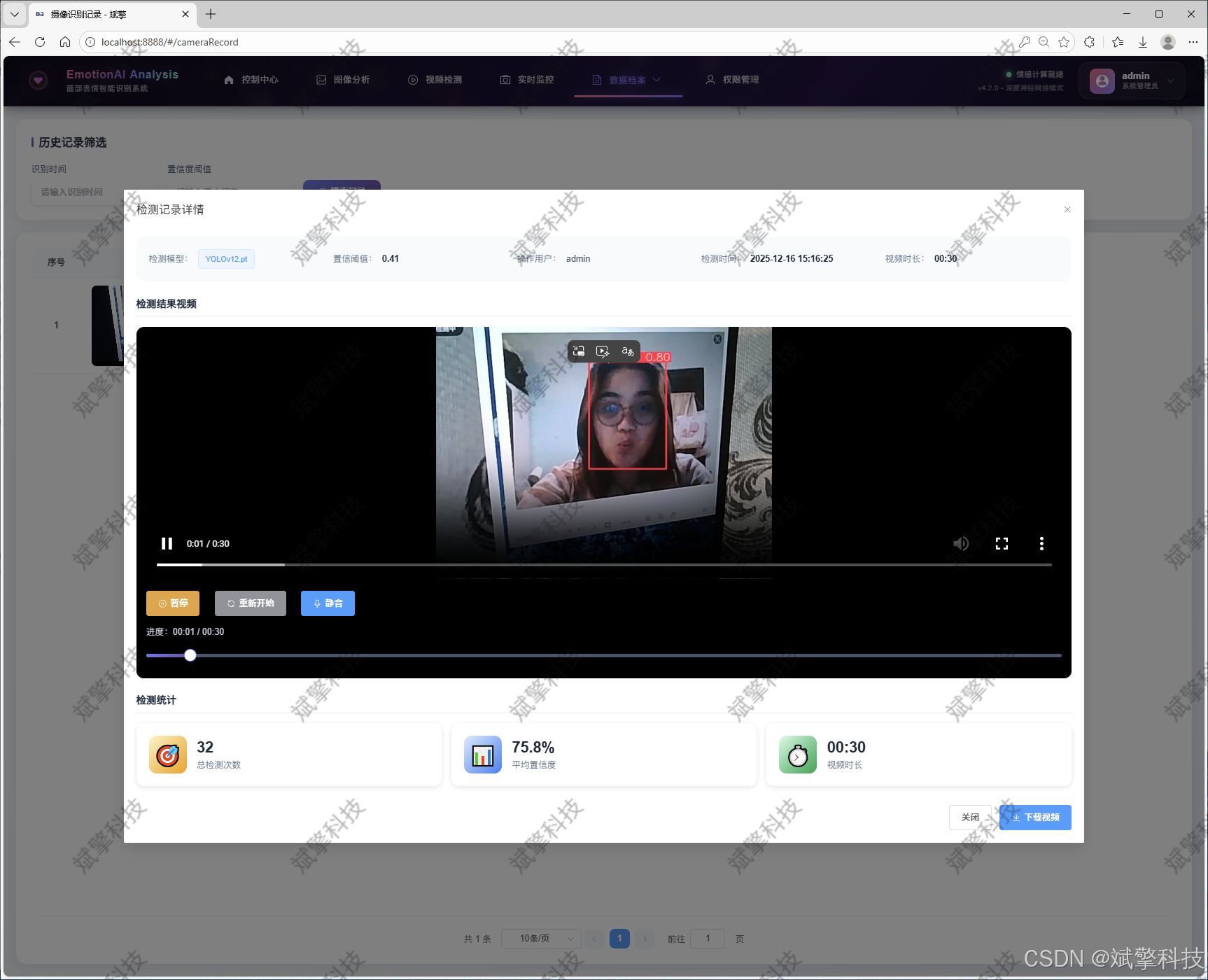 全功能应用平台:提供从用户登录注册、多源媒体(图/视频/实时流)检测、记录管理、数据可视化到用户权限控制的完整闭环功能,所有流程均与数据库联动,形成一个真正的生产级应用。