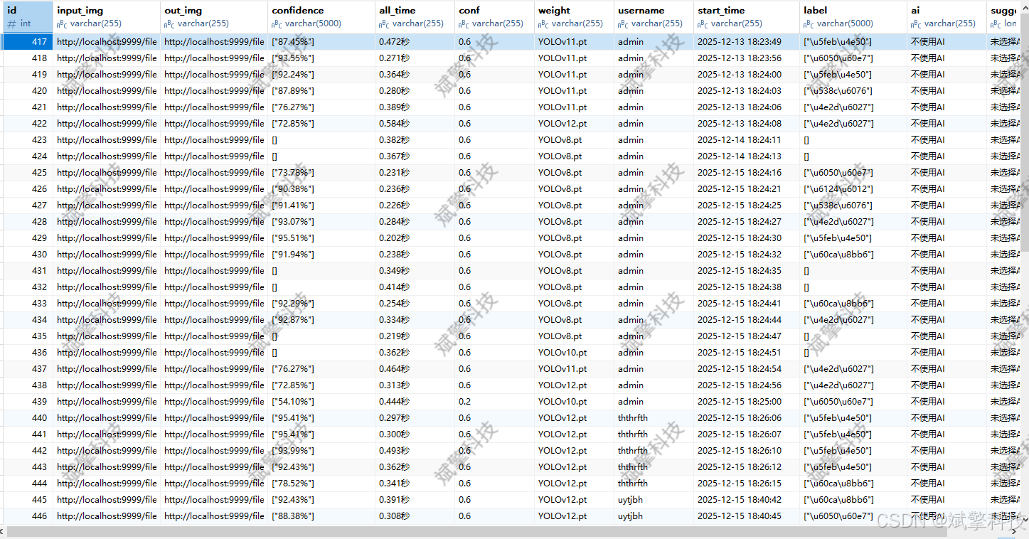 ✅ 支持图像检测、视频检测和摄像头实时检测,检测结果保存到MySQL数据库。