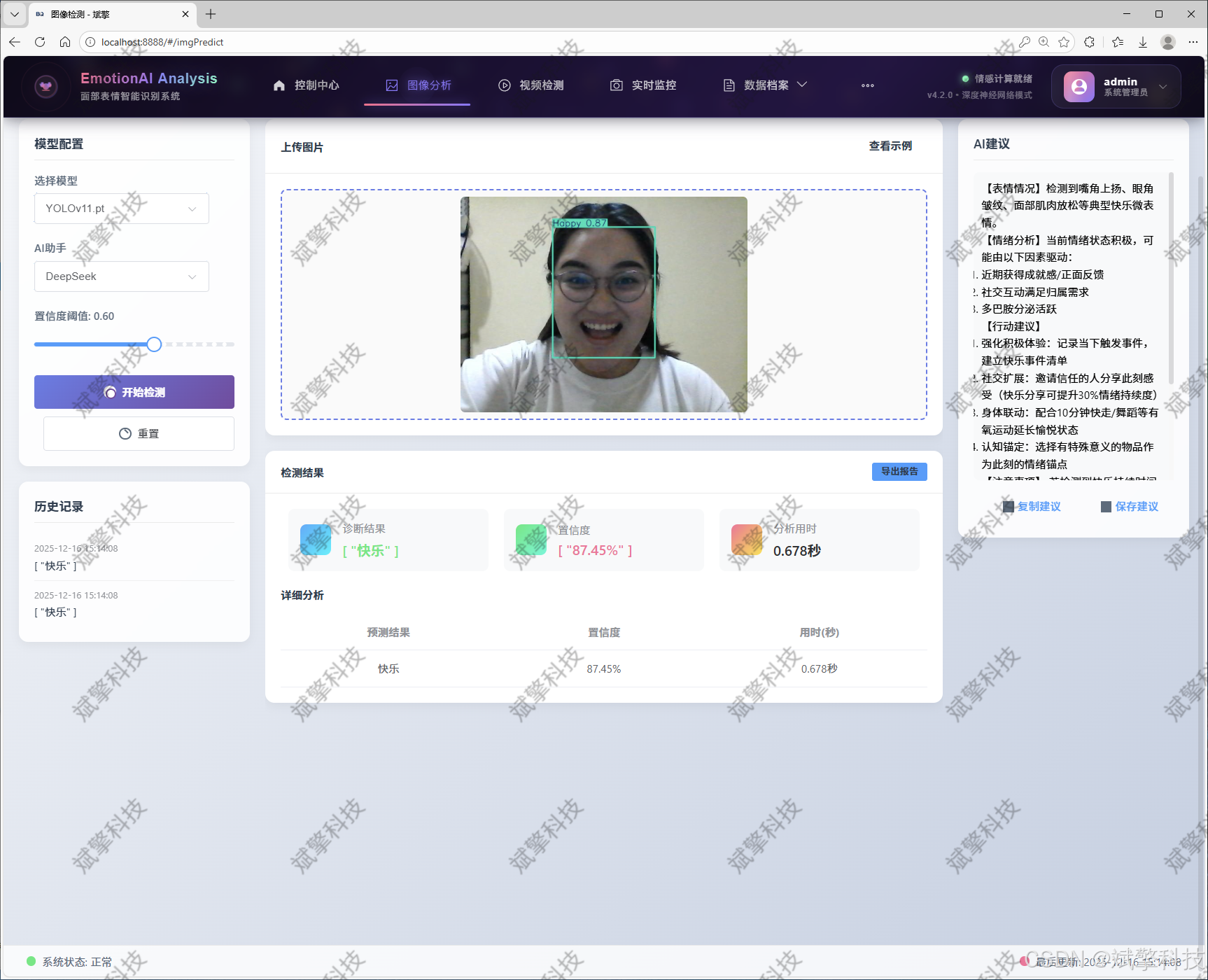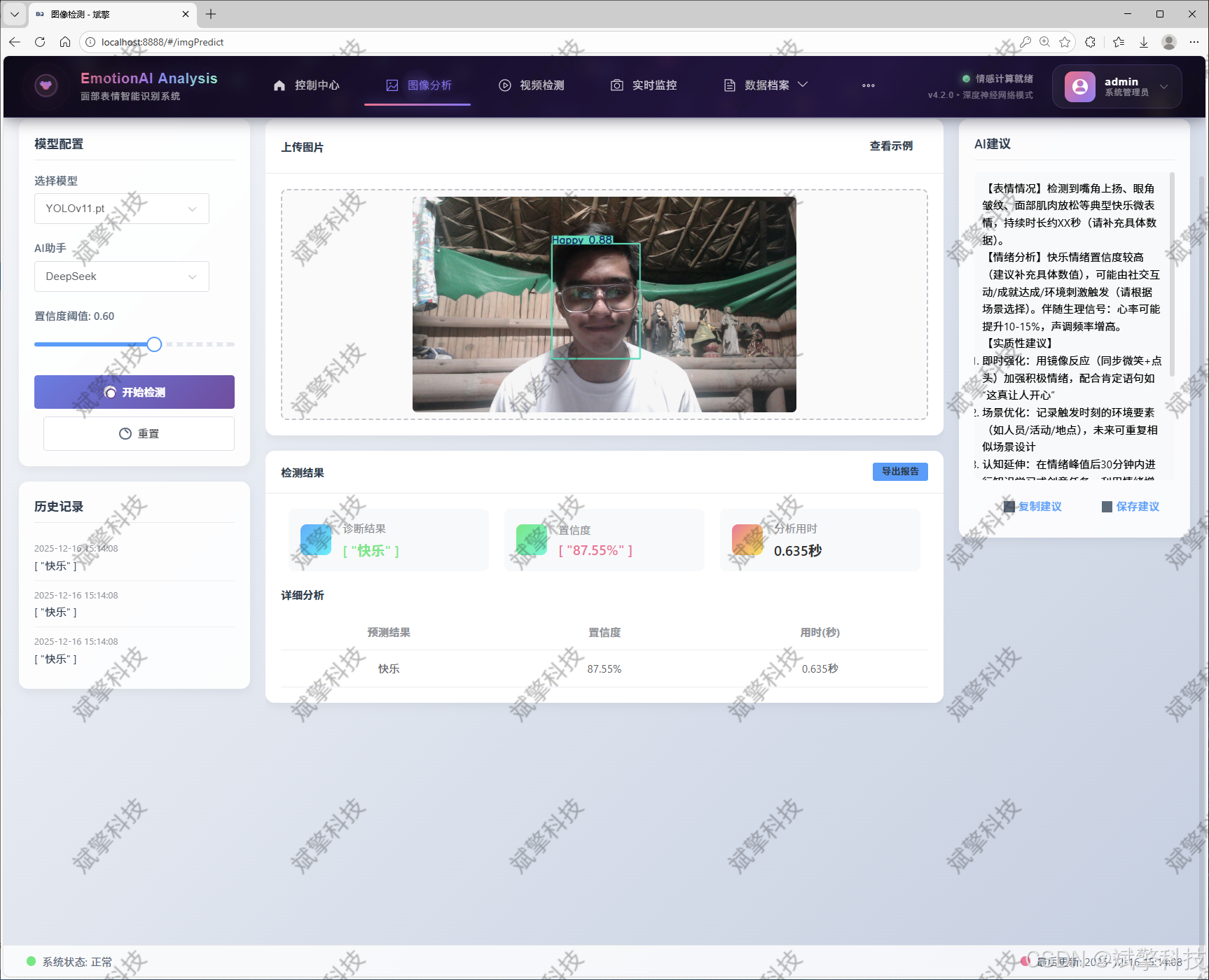 基于深度学习的人脸表情识别检测系统(最新web界面+YOLOv8/YOLOv10/YOLOv11/YOLOv12+DeepSeek智能分析 +前后端分离)_哔哩哔哩_bilibilihttps://www.bilibili.com/video/BV18Aq3B6Egv/?vd_source=549d0b4e2b8999929a61a037fcce3b0f