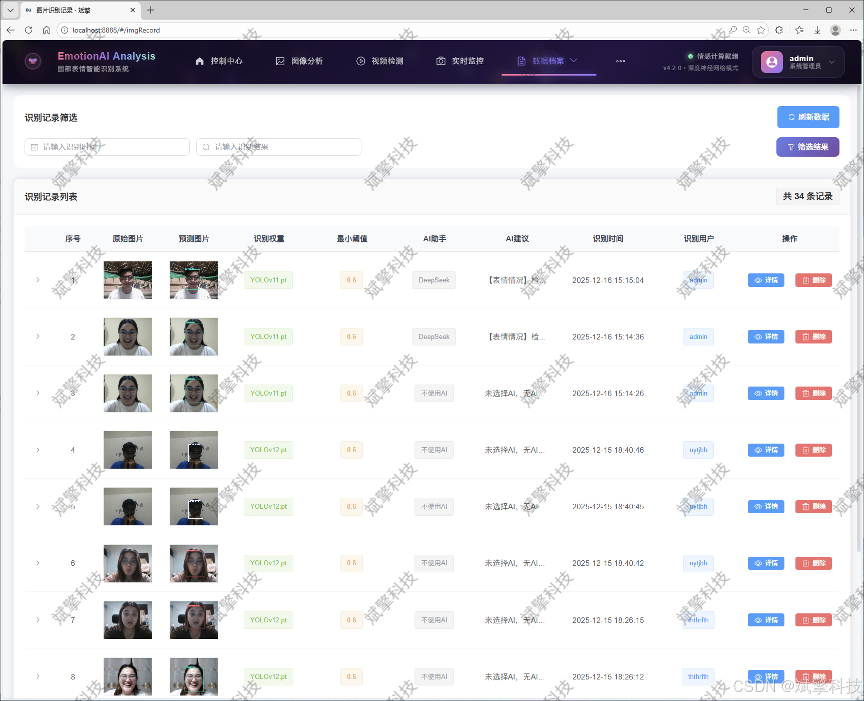 基于深度学习的人脸表情识别检测系统(最新web界面+YOLOv8/YOLOv10/YOLOv11/YOLOv12+DeepSeek智能分析 +前后端分离)_哔哩哔哩_bilibilihttps://www.bilibili.com/video/BV18Aq3B6Egv/?vd_source=549d0b4e2b8999929a61a037fcce3b0fhttps://www.bilibili.com/video/BV18Aq3B6Egv