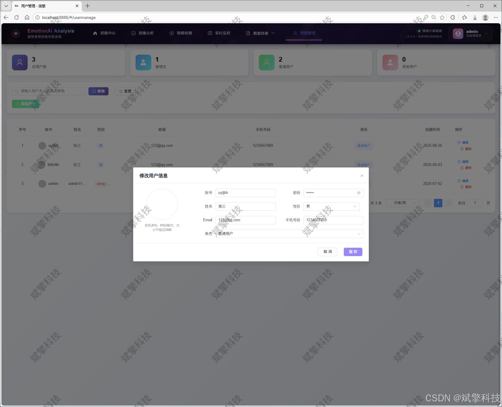 ✅ 用户管理模块,管理员可以对用户进行增删改查。
