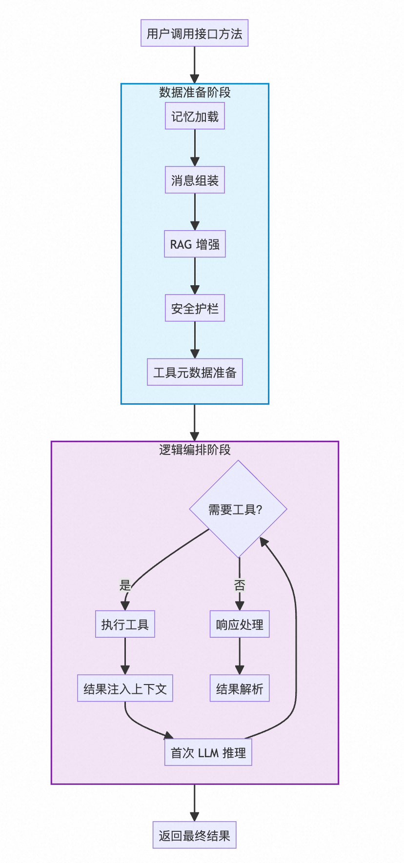 在这个阶段,像一个“系统架构师”,把各种零件组装成一台完整的机器。此时并没有发生任何 AI 推理或工具调用。