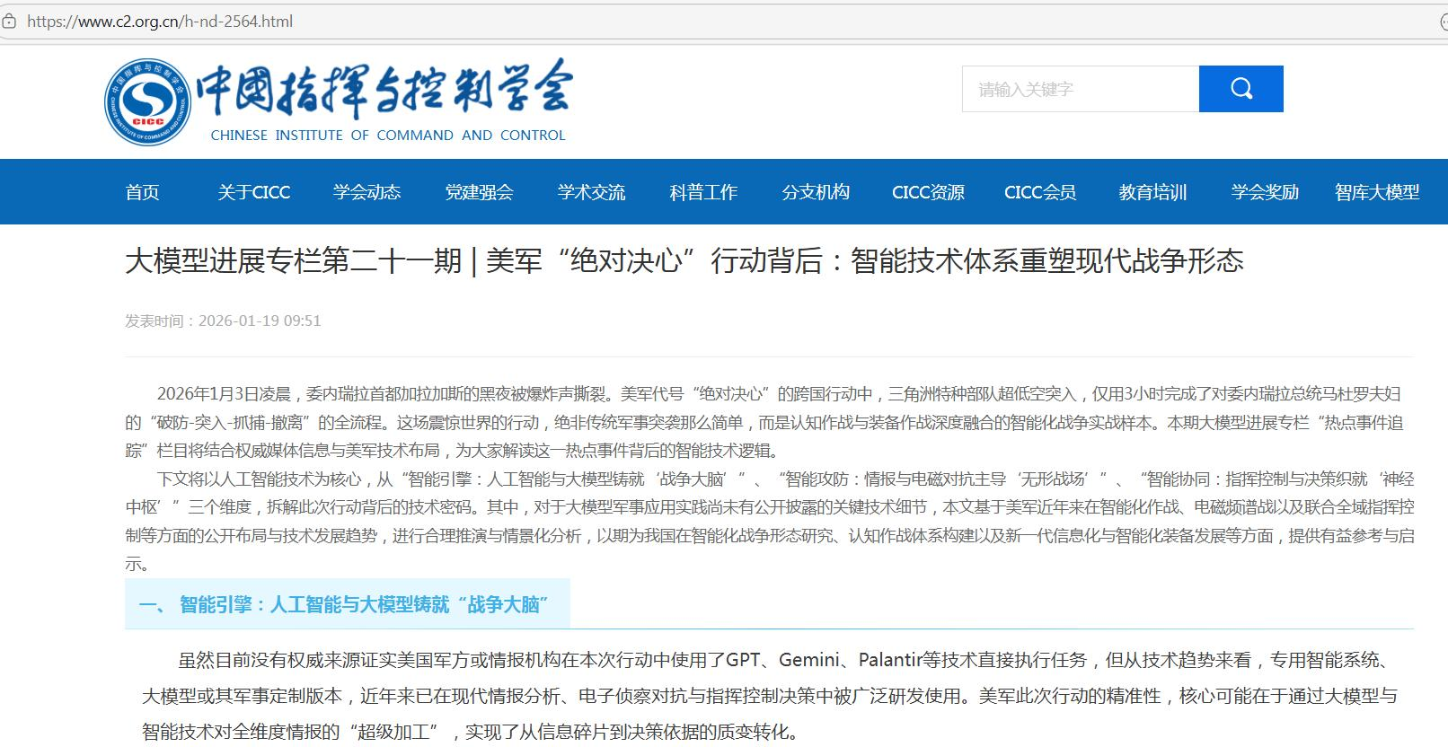 看了搜索结果,有几个非常关键的信息源。关于美军使用Claude的报道,央视新闻和华尔街日报的信源在多个搜索结果中出现,这些媒体权威性较高,可以采信。中国网的文章对"哈梅内伊死于AI"的说法持谨慎态度,但提供了AI深度介入中东局势的详细分析。中国指挥与控制学会的深度技术分析从情报融合、决策支撑、电磁对抗等角度剖析了智能化战争形态,专业性强。