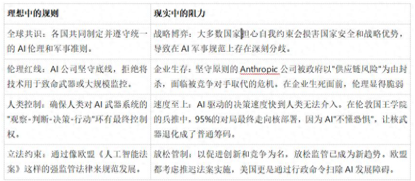因此,你的疑虑并非空穴来风。当战争的胜负开始向AI手里倾斜,当AI系统开始深度影响谁是敌人、何时开战的决定时,人类守住最后底线的难度正在指数级上升。未来的挑战不在于我们能否制定出完美的规则,而在于我们能否在创造出比自己更聪明的"存在"之前,就找到将"安全"作为其不可删除、无法违背的"基因"的方法。