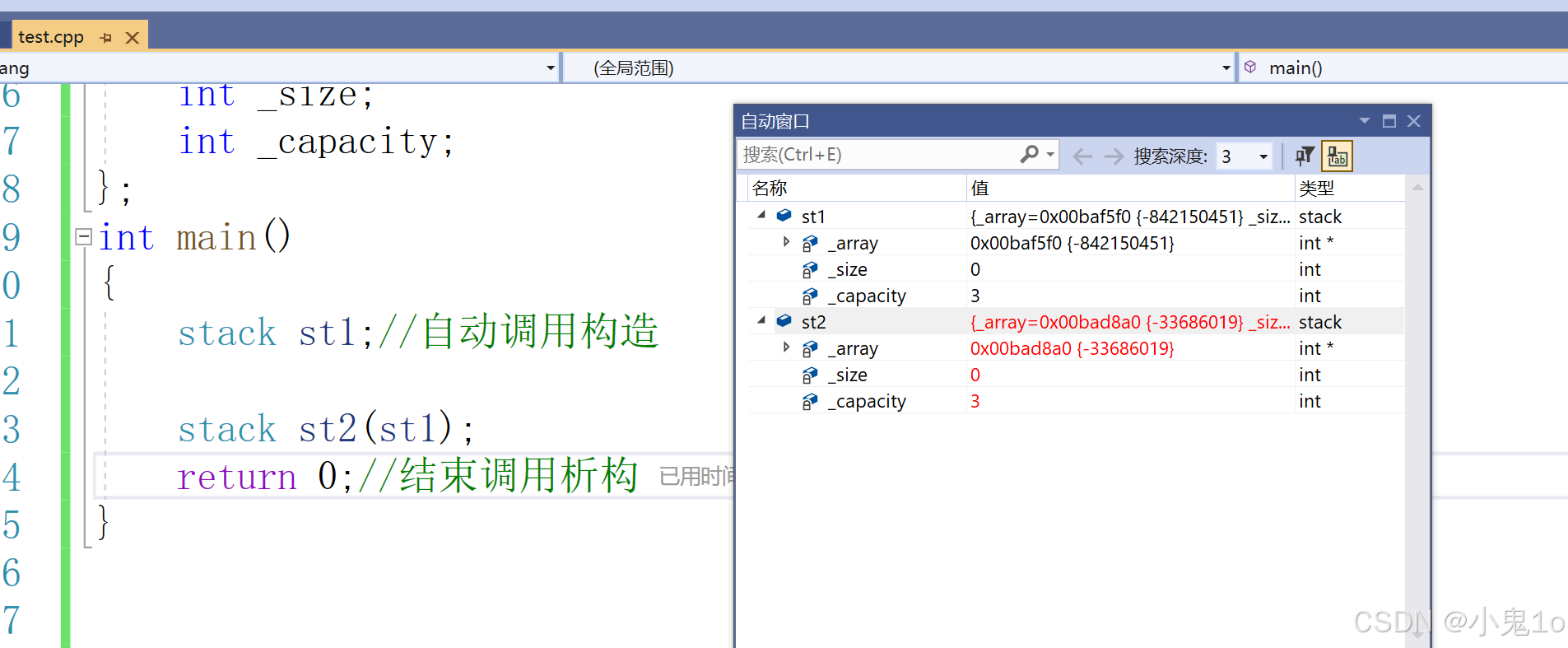 stack st;//自动调用构造