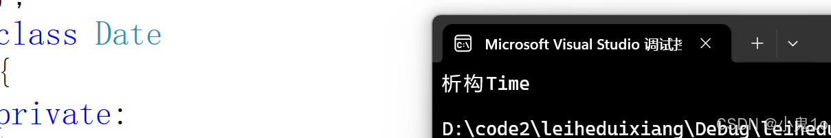 (6)还有一点,我们显示写了析构函数,对于自定义类型,也会调用它本身的析构,也就是说无论写不写析构函数,自定义类型都会调用它本身的默认析构函数。