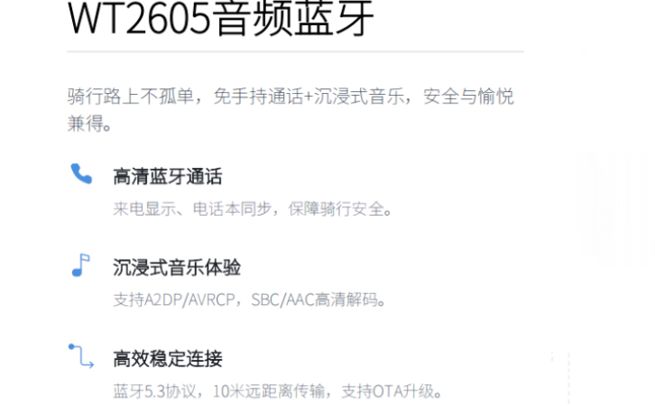 四、骑行娱乐与通讯:WT2605音频蓝牙