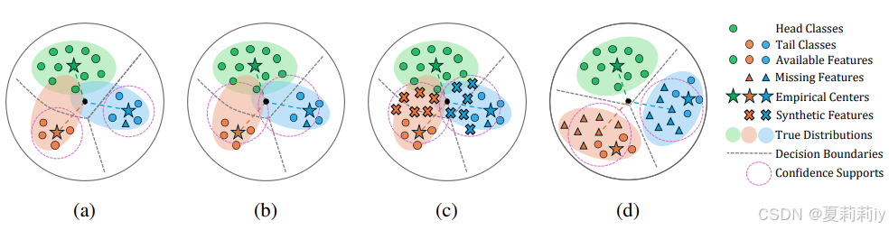 ②但是对于长尾数据来说,头部类别占据了几乎整个特征空间,不同类别的收敛是不对称的