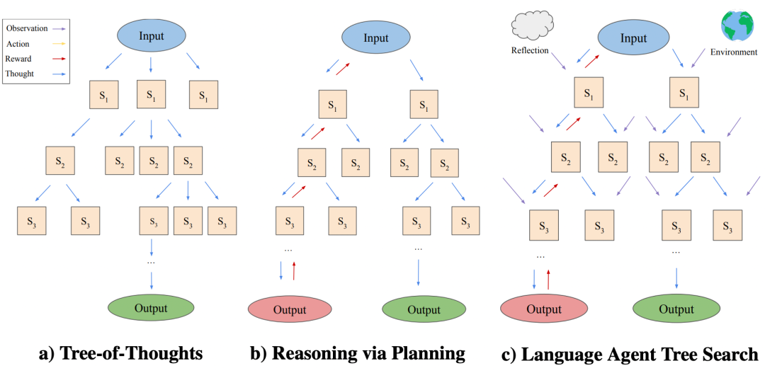 LATS与Self-Discover的区别在于,Self-Discover是为任务寻找一条最佳的“思考路径”,然后单路径执行;而LATS则是通过多路径探索来寻找最佳的“行动序列” 。它在每次决策点都生成多个可能的行动分支,并根据其价值评估进行权衡,从而避免在单一路径上陷入困境。这种多路径探索与反思的结合,使其在复杂决策空间中表现出卓越的鲁棒性。