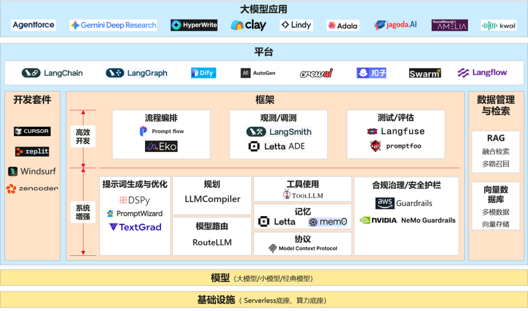 LangChain → LlamaIndex → CrewAI → AutoGen → Dify → Coze → 自研框架……