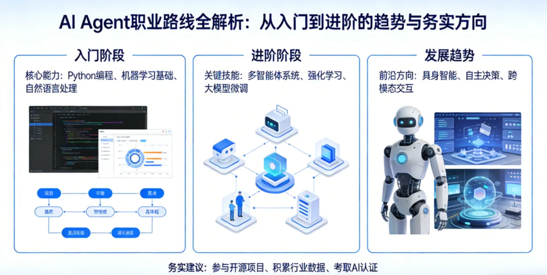 深入理解业务痛点,用Agent去解决。懂业务的Agent开发者,比纯技术人值钱。实际的业务场景,可以通过实习获得,因此建议大家越早出去实习越好,积攒越多的实习经历越好。