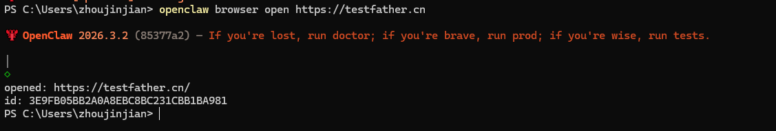 openclaw browser --browser-profile openclaw open https://testfather.cn