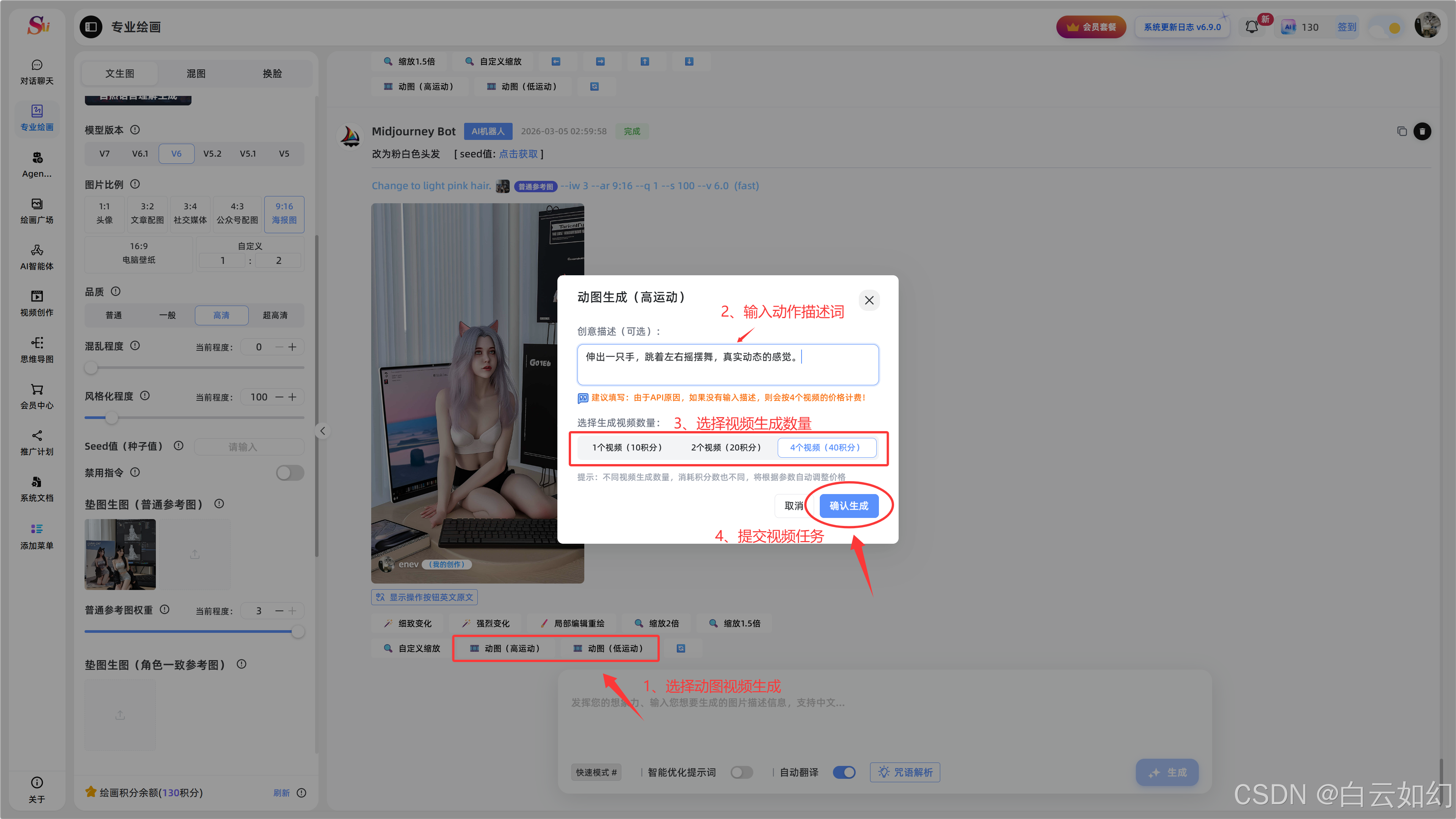 4、使用Mid`J HD视频生成大模型让手办图片“动起来”