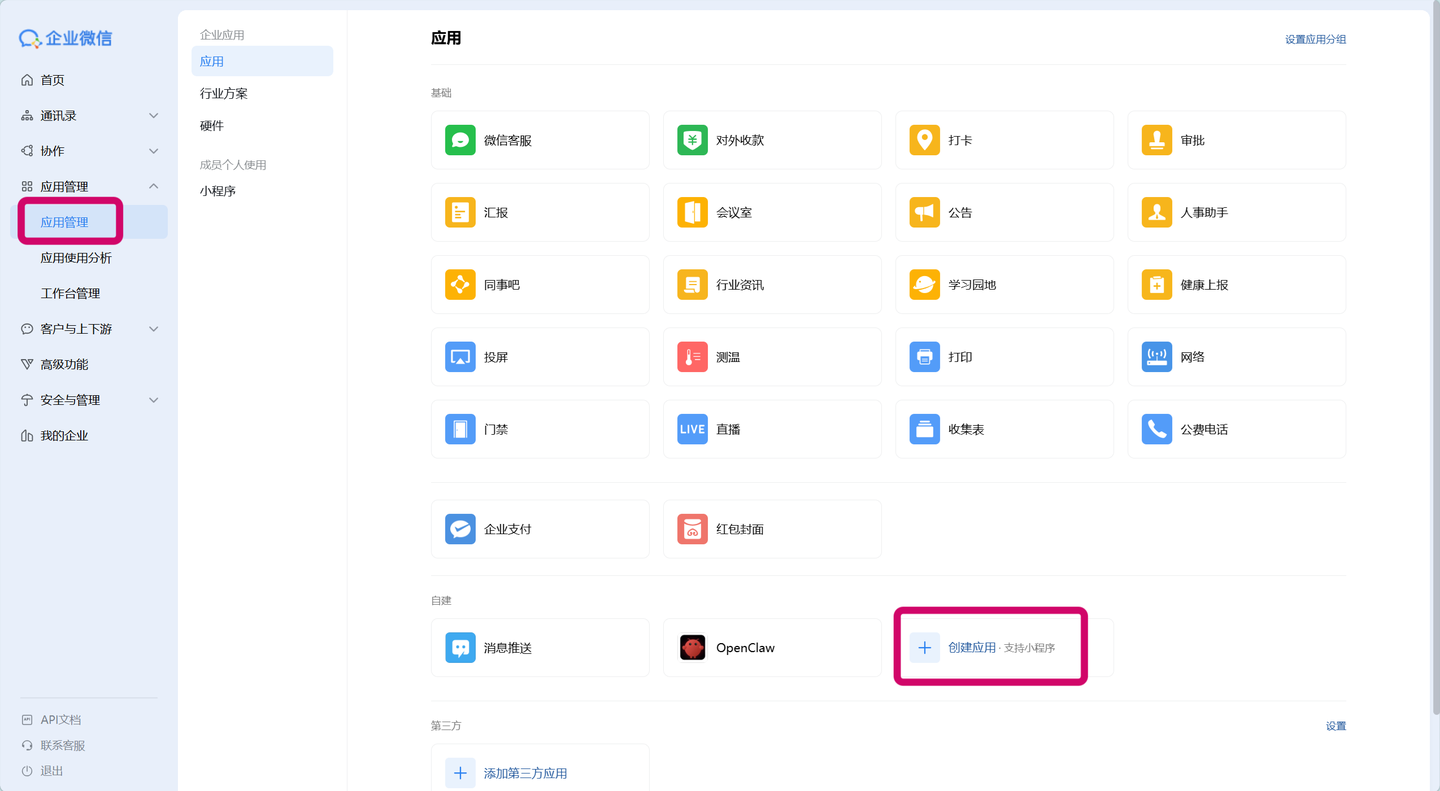 1.回到企业微信后台