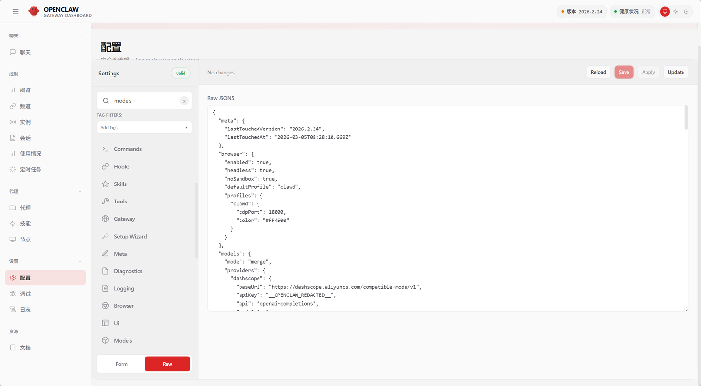 或直接编辑配置文件openclaw.json: