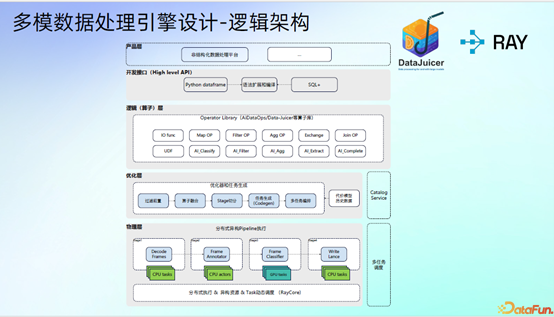 接收用户提交的 Logical Plan 后,应用通用 SQL 与多模态优化规则。核心能力包括:UDF 表达式从 Project 中分离以支持独立调度;算子融合(如 CPU I/O 或 AI_Filter)减少资源开销;延迟计算将嵌套操作拆分为独立步骤并赋予独立并发资源,提升执行灵活性与性能。