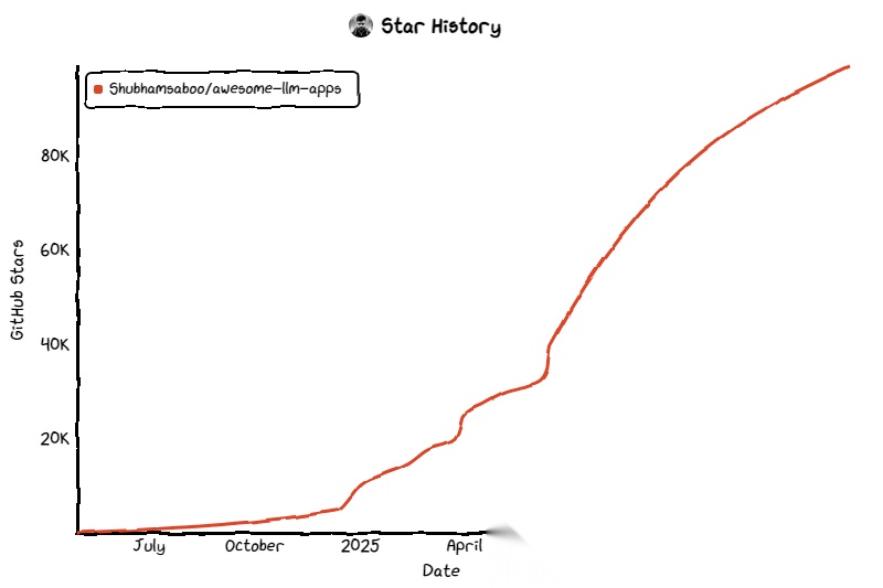 说明:Awesome LLM Apps 仓库总计收录了 88 个项目,由于篇幅限制,本文仅展示各分类中的代表性项目,帮助你快速了解项目类型和技术方向。完整的项目列表请参考 GitHub 仓库的 README.md 文件。