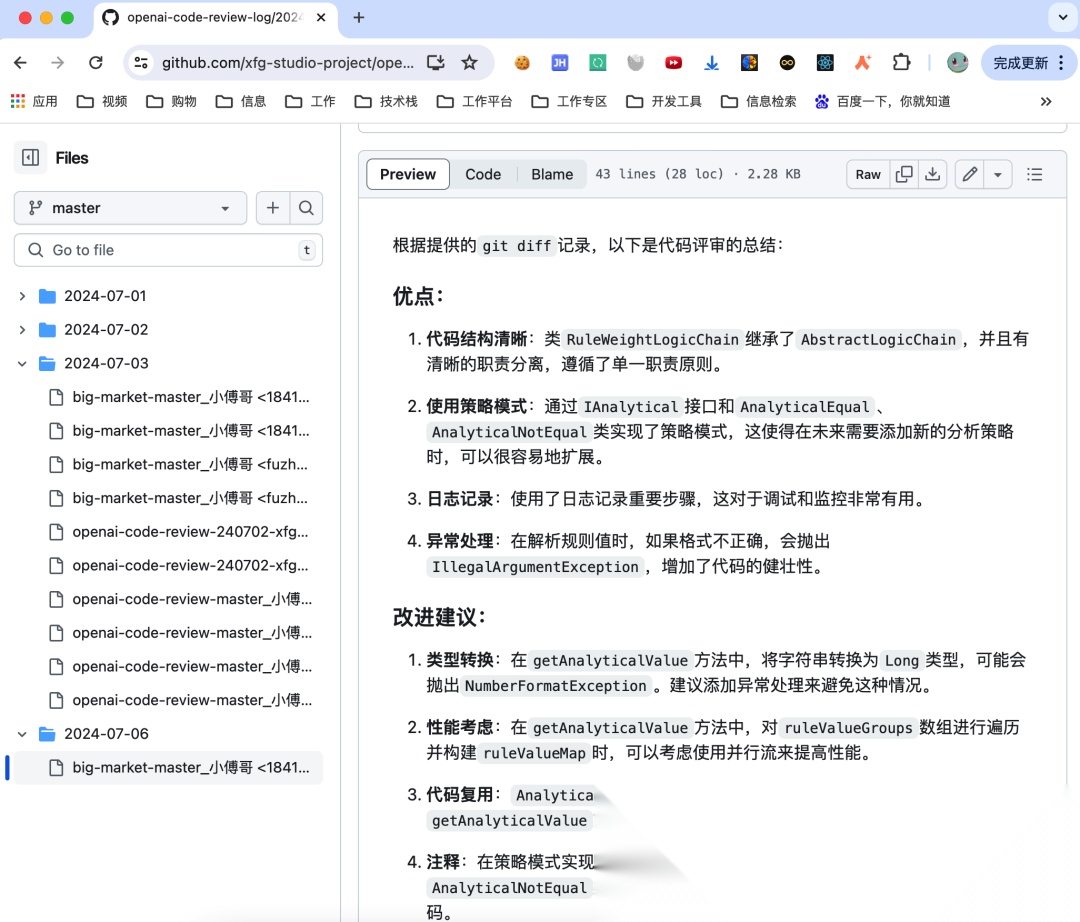 本套组件是小傅哥基于 GitHub Actions + OpenAI(ChatGLM) + Git/GitHub + 公众号模板消息 串联出从代码提交获取通知,Git 检出分支变化,在使用 OpenAI 进行代码和写入日志,再发送消息通知完成整个链路。