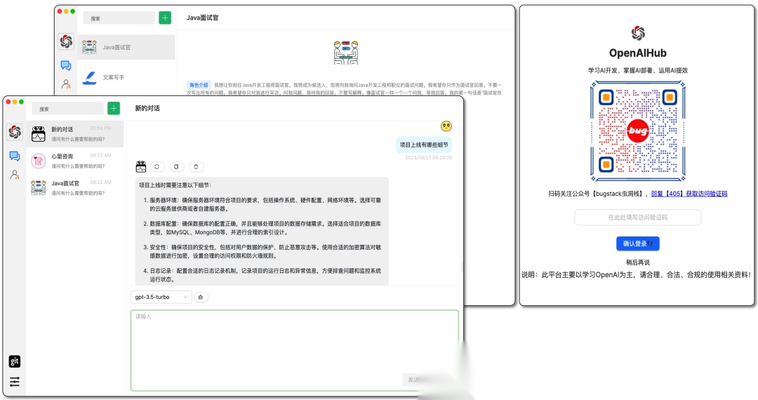 此项目以应用OpenAI技术,对接多种大模型提供生成式服务,为XXX场景提效。项目的架构设计实现以微服务进行拆分,涵盖;OpenAI-SDK、OpenAI-API、公众号鉴权、微信支付等。并以模块化设计,积木式构建应用,让不同的场景诉求都可以配置化对接。