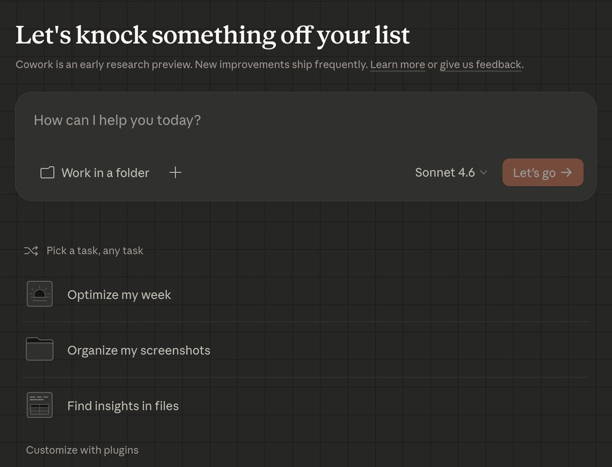 Cowork 只在桌面端可用(网页版没有),它让 Claude 能够访问文件、在后台自主执行任务。