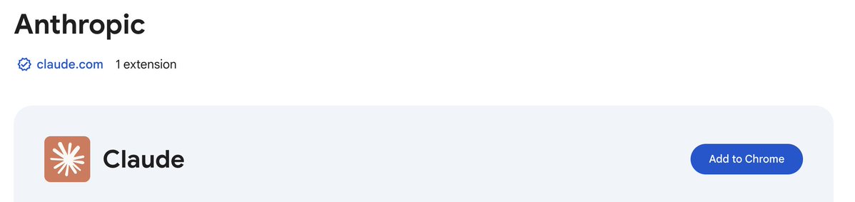 下载地址可以在 Chrome Web Store 搜索 Anthropic 发布的扩展。
