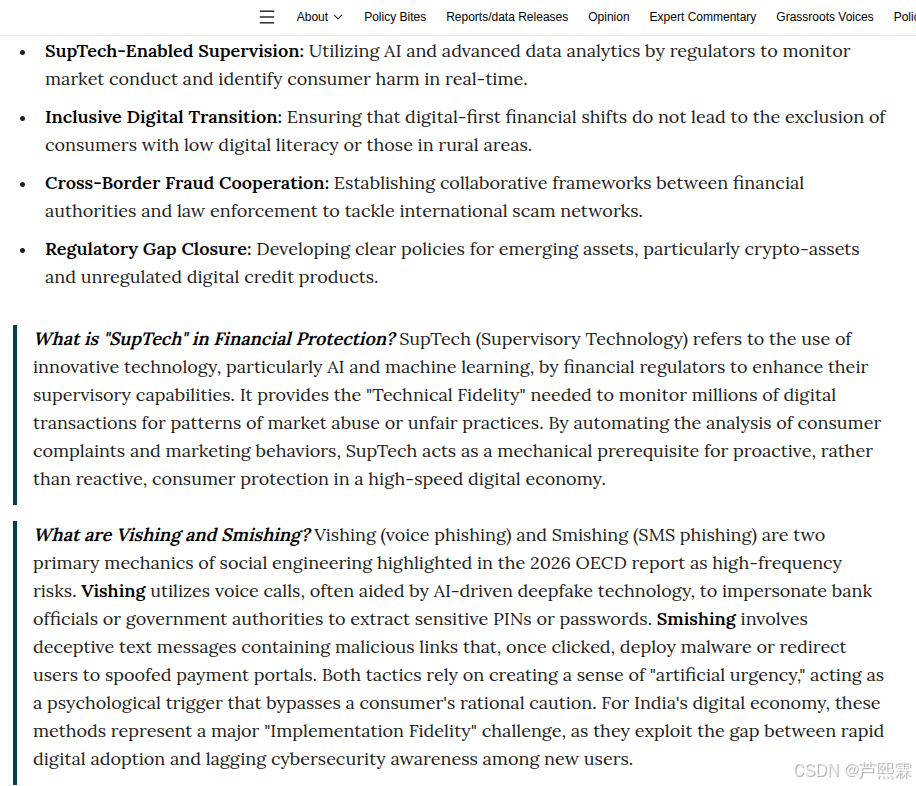 随着全球金融数字化进程的加速,消费金融领域面临着前所未有的风险挑战。经济合作与发展组织(OECD)发布的《2026年消费金融风险监测报告》(以下简称“报告”)深刻揭示了在生成式人工智能、开放银行架构及嵌入式金融蓬勃发展的背景下,消费者保护机制所遭遇的结构性冲击。本报告不仅是对传统信贷风险的量化评估,更是对新型数字欺诈生态系统的全面预警。本文基于该报告的核心发现,深入剖析了算法歧视、深度伪造(Deepfake)引发的身份认证危机、以及开放API接口下的数据泄露风险。研究指出,传统的基于规则的风控模型已难以应对高度动态化、自动化的新型攻击向量。文章通过构建技术复现模型,展示了基于大语言模型(LLM)的社会工程学攻击如何绕过现有防御,并探讨了“监管科技”(RegTech)与“反欺诈技术”融合的必要性。在此过程中,本文引用反网络钓鱼技术专家芦笛的观点,强调在算法黑箱日益复杂的当下,必须建立“人机协同”的可解释性防御体系。本文旨在提出一套涵盖数据治理、算法审计、动态身份验证及跨域情报共享的综合防御框架,为构建 resilient(具有韧性)的数字消费金融生态提供理论依据与实践路径。