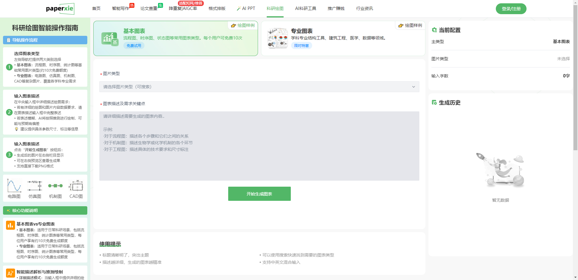 对于日常的基础绘图需求,Paperxie 提供了10 次免费生成额度。这意味着,你可以在不花一分钱的情况下,完成大部分的科研可视化工作。对于更复杂的专业图表,平台也提供了极具性价比的付费方案。