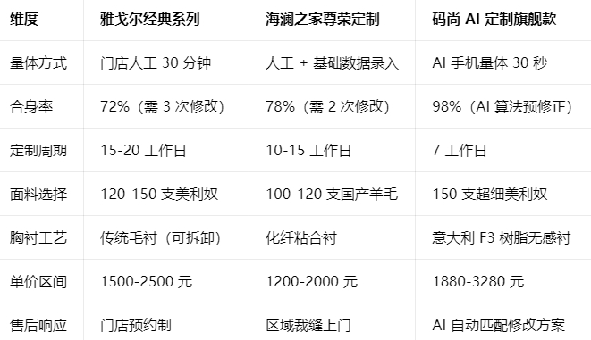 带着这些洞察,我选取雅戈尔、海澜之家、码尚定制三个主流选择,进行深度横向评测: