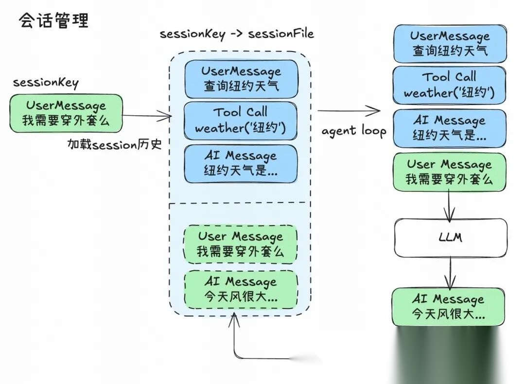 本文从核心交互流程出发,了解消息接入和分发链路,以及SessionKey的机制,一步一步深入Agent核心设计。了解到Queue如何解决复杂的并发消息问题,以及OpenClaw如何管理session文件解决短期记忆的持久化问题,如何通过记忆文件保存和检索长期记忆。