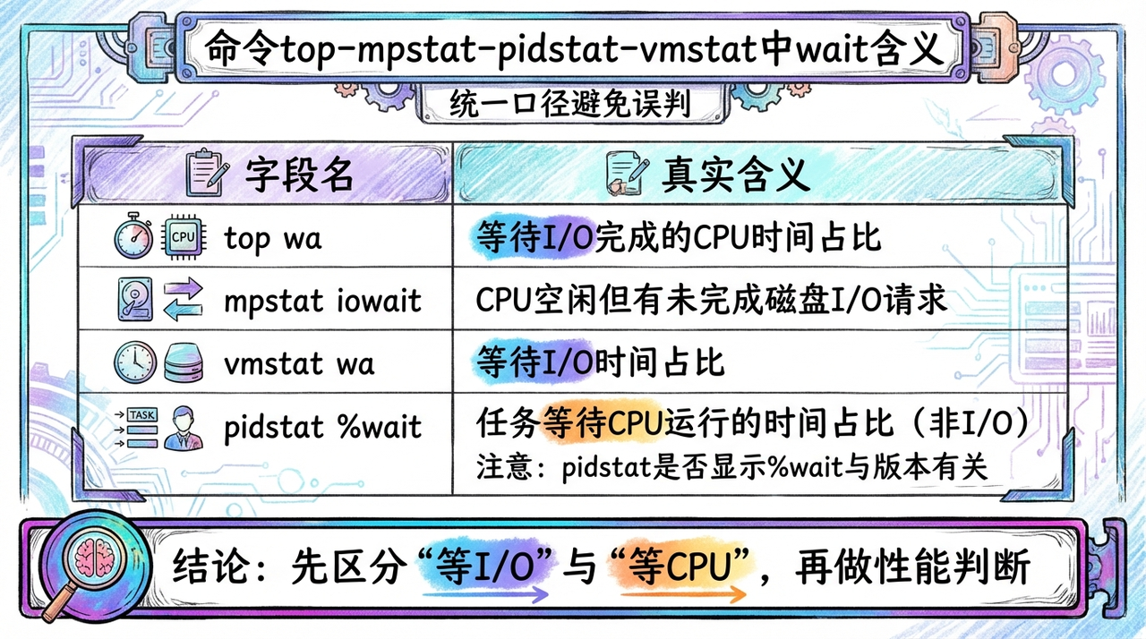 命令top-mpstat-pidstat-vmstat中wait含义