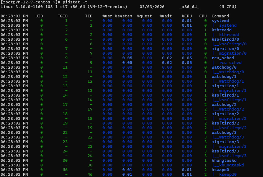 pidstat -t -p pid显示进程里面的线程的统计信息 -