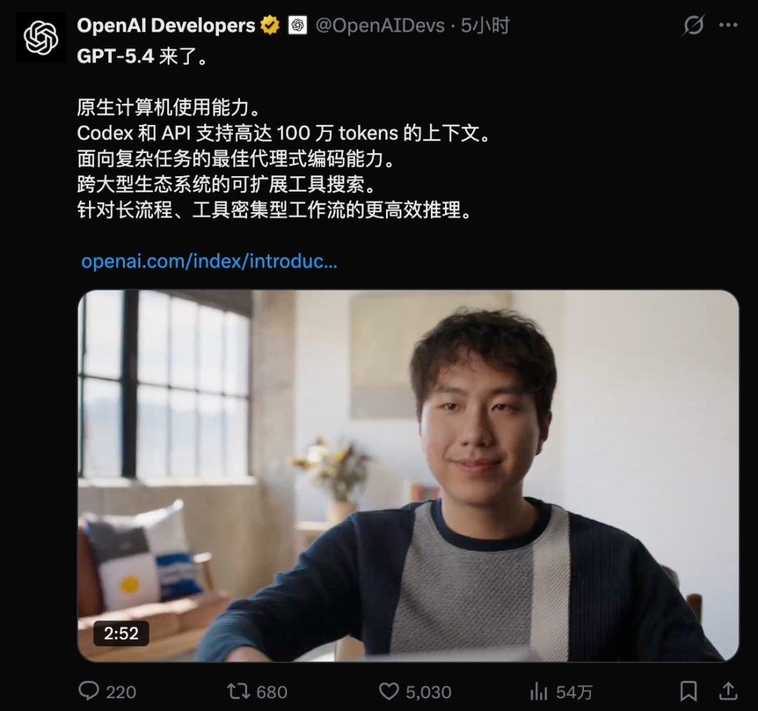 OpenAI 毫无预兆地丢出了 GPT-5.4。或许没有之一。
