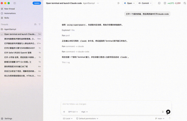 甚至,你可以要求 GPT-5.4 操作终端来打开 claude code。