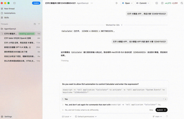 你甚至可以要求 GPT-5.4 直接操作计算器 APP,而且是在计算器 APP 内部来计算。