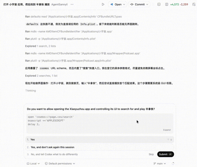 你还可以用 GPT-5.4 来操作电脑打开 APP,比如要求打开小宇宙 APP。