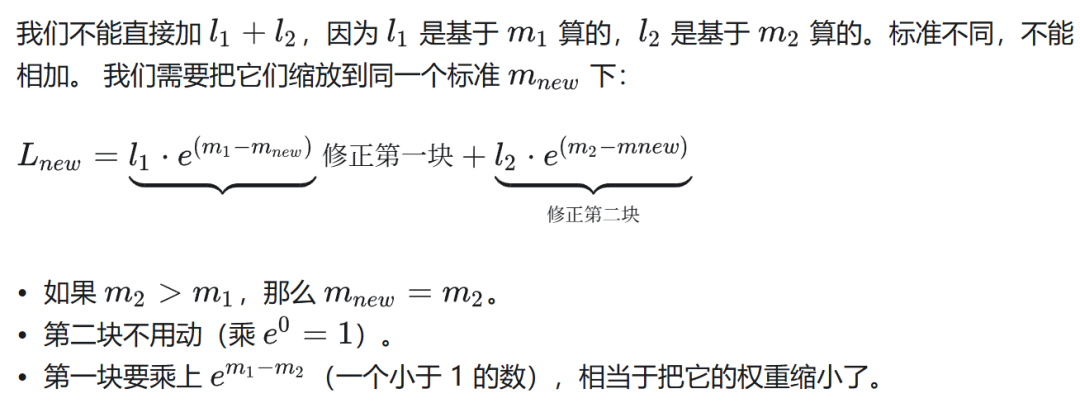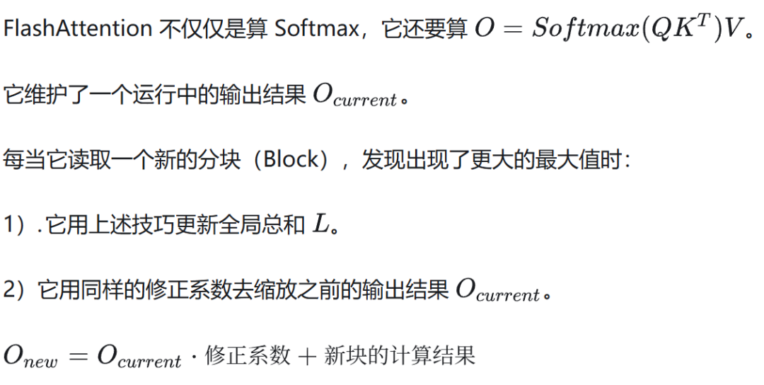 总结:Online Softmax 数学技巧。它通过记录当前的局部最大值,并在发现更大的值时,利用指数的性质(e^a-b)生成一个修正系数,从而动态地更新之前的计算结果。