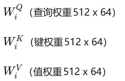 对于第 i 个头(比如第 1 个头),我们有专属的权重矩阵: