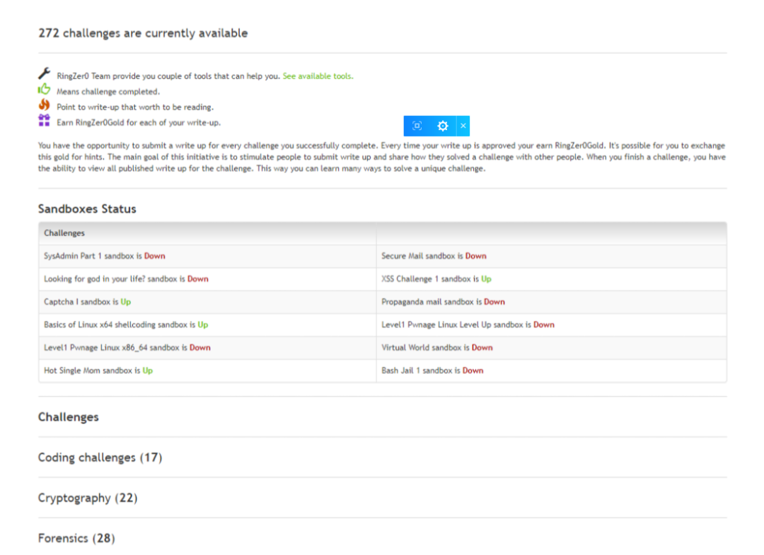 - RingZer0Team:300+道CTF题,专攻竞赛技能。