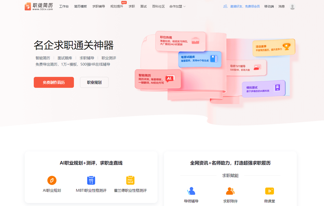 职徒简历专注于行业与岗位匹配,适合应届生和职场新人。平台覆盖29个行业,提供46款风格简历模板+2000+专业岗位模板。设计符合HR筛选标准,突出不同岗位的核心能力要求。