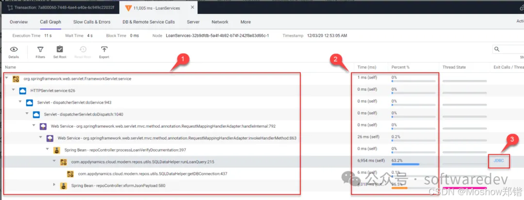 假设用户反馈"贷款审批"页面加载缓慢。你打开AppDynamics,发现POST /loan/approve这个Business Transaction平均响应时间从200ms暴涨到了5秒 。