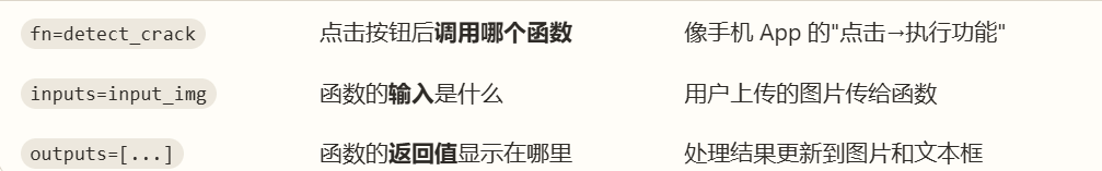 在之前我们学过了图像读取、图像显示、图像预处理、了OpenCV 裂缝检测核心功能以及学习过自适应阈值和形态学操作优化。这些已经完成了检测的基本功能,今天我们将其包装成网页形式(gradio),使其可以通过链接进行可视化,从pycharm上移动到web,更加直观,也更加吸引人。