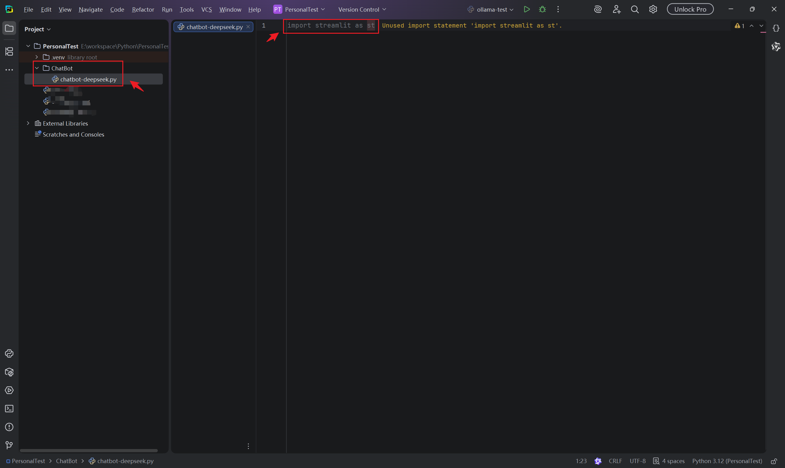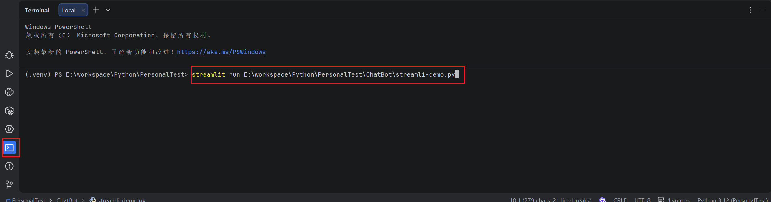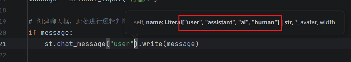 将输出接入模型api,并生成聊天框,由于streamlit本身就是循环执行的,因此我们无需while进行控制了。