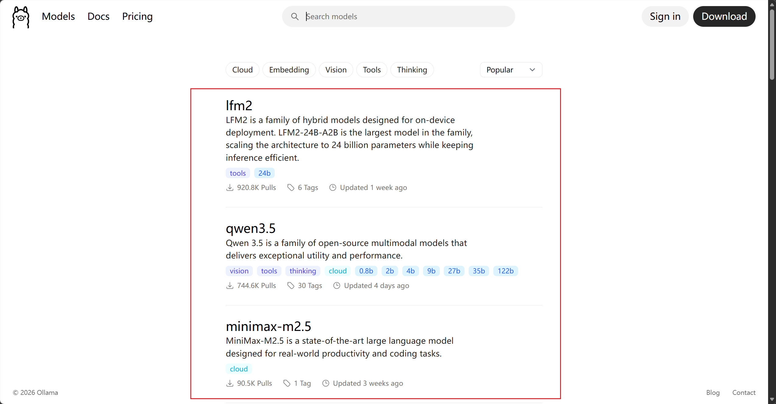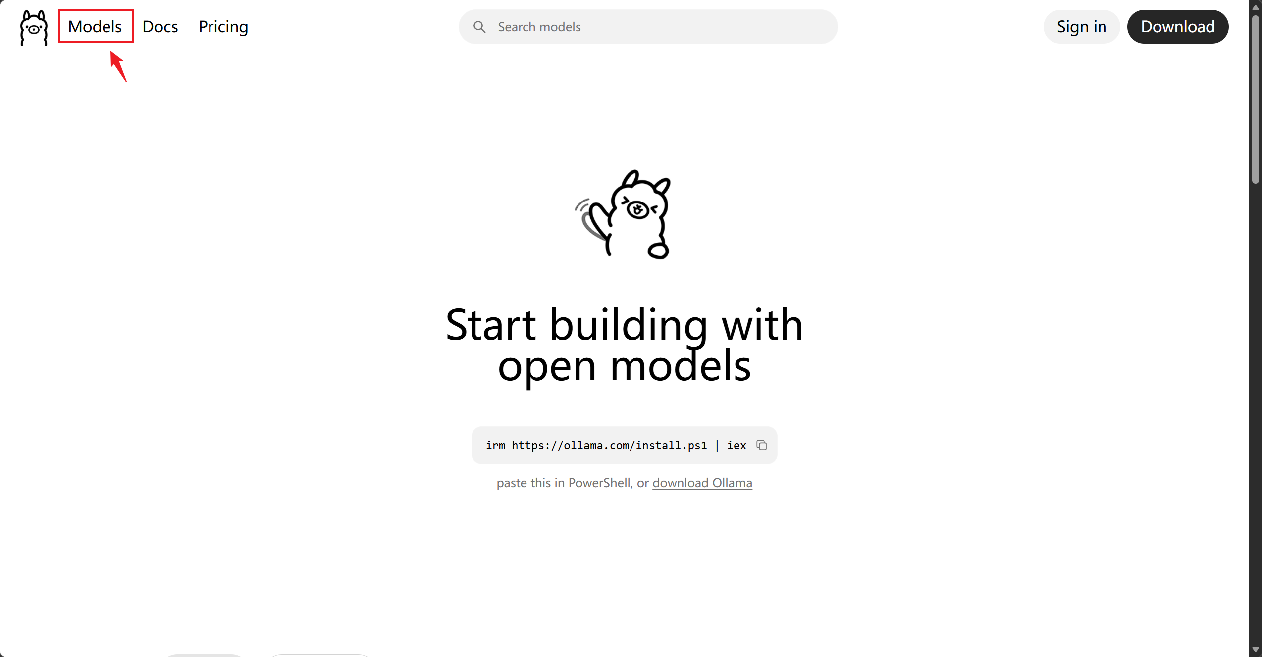 回到Ollama官网:Ollama,点击模型,跳转对应页面
