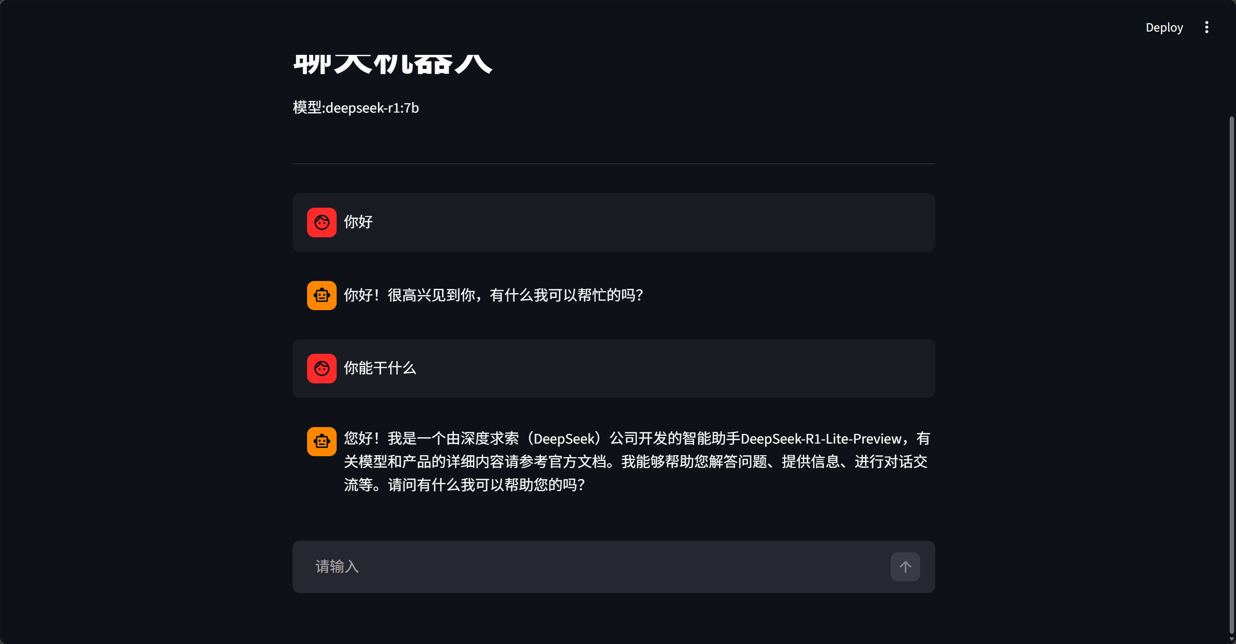 本文主要介绍基于Ollama部署本地私有化模型deepseek-r1,并结合python+streamlit开发一个简单的用于对话的聊天机器人,以熟悉大模型开发入门。觉得本文对您有帮助的话,麻烦点赞收藏支持下,感谢。
