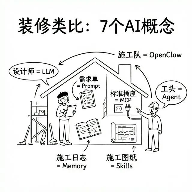 这两年 AI 术语越来越多:LLM、MCP、Agent、Skills、OpenClaw。